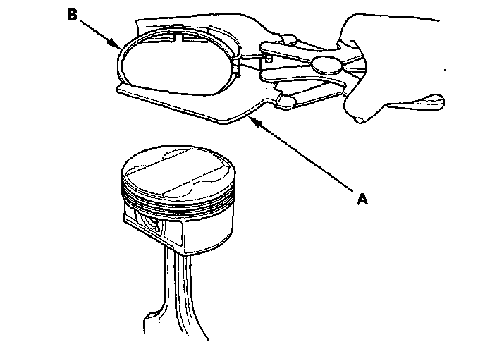 5. Measure the piston ring end-gap (B) with a feeler gauge: