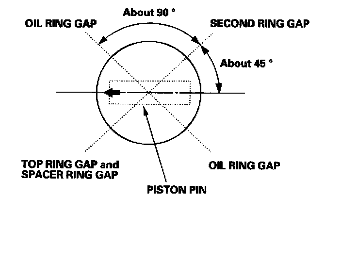 ^ If the gap is too large, recheck the cylinder bore diameter against the wear limits. If the bore is over the service limit, the engine block must be rebored.