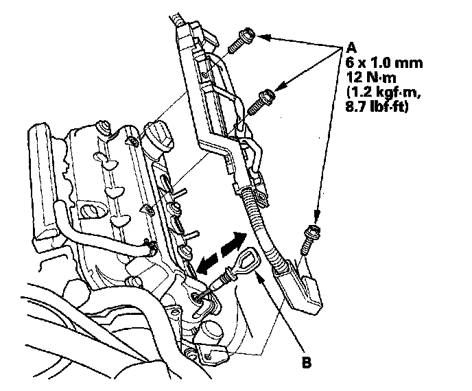 8. Tighten the two bolts (B) securing the harness holder.