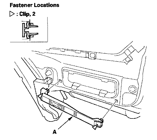2. Remove the clips and the rear bumper side spacer (A).