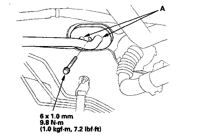 3. Remove the bolt, then disconnect the A/C lines (A) from the evaporator core.