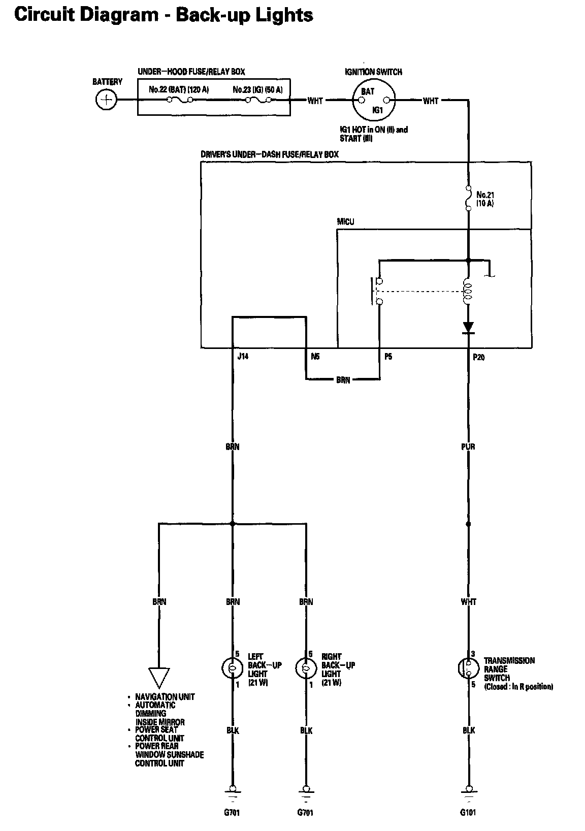 Exterior Lights Circuit Diagram- Back-up Lights: