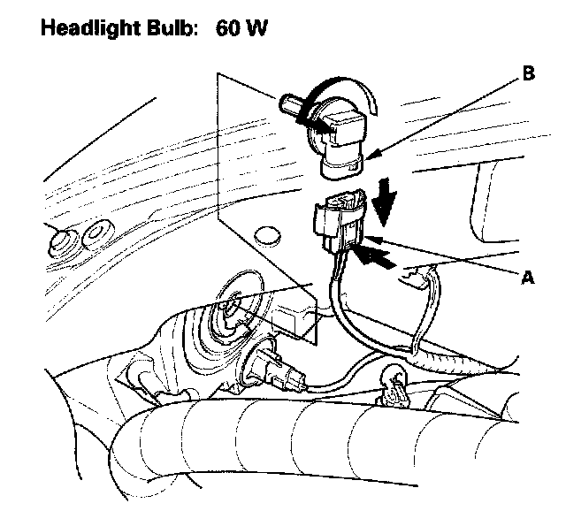 3. Disconnect the 3P connector (A) from the bulb socket (B).