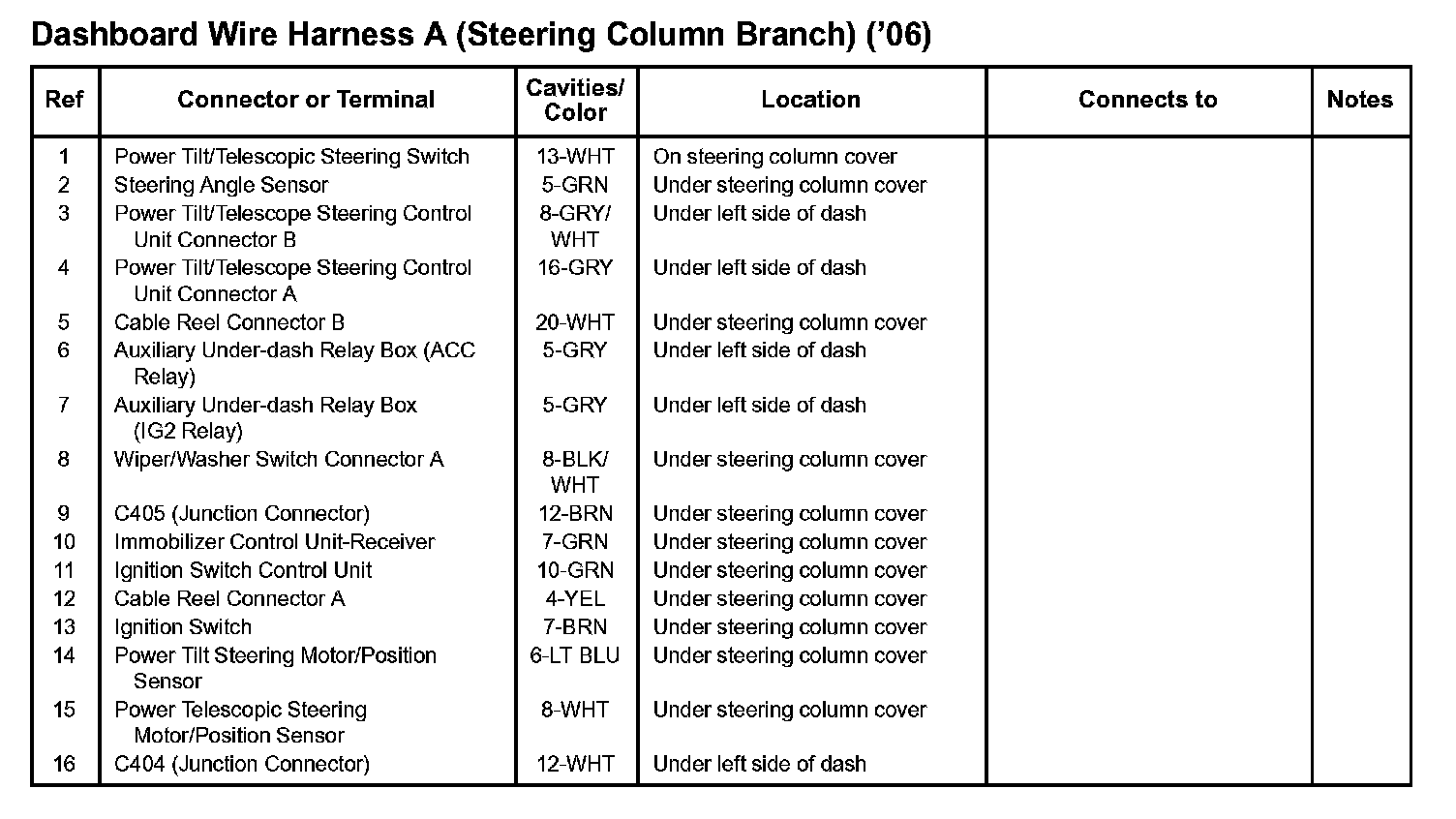 Dashboard Wire Harness A (Steering Column Cover Branch)