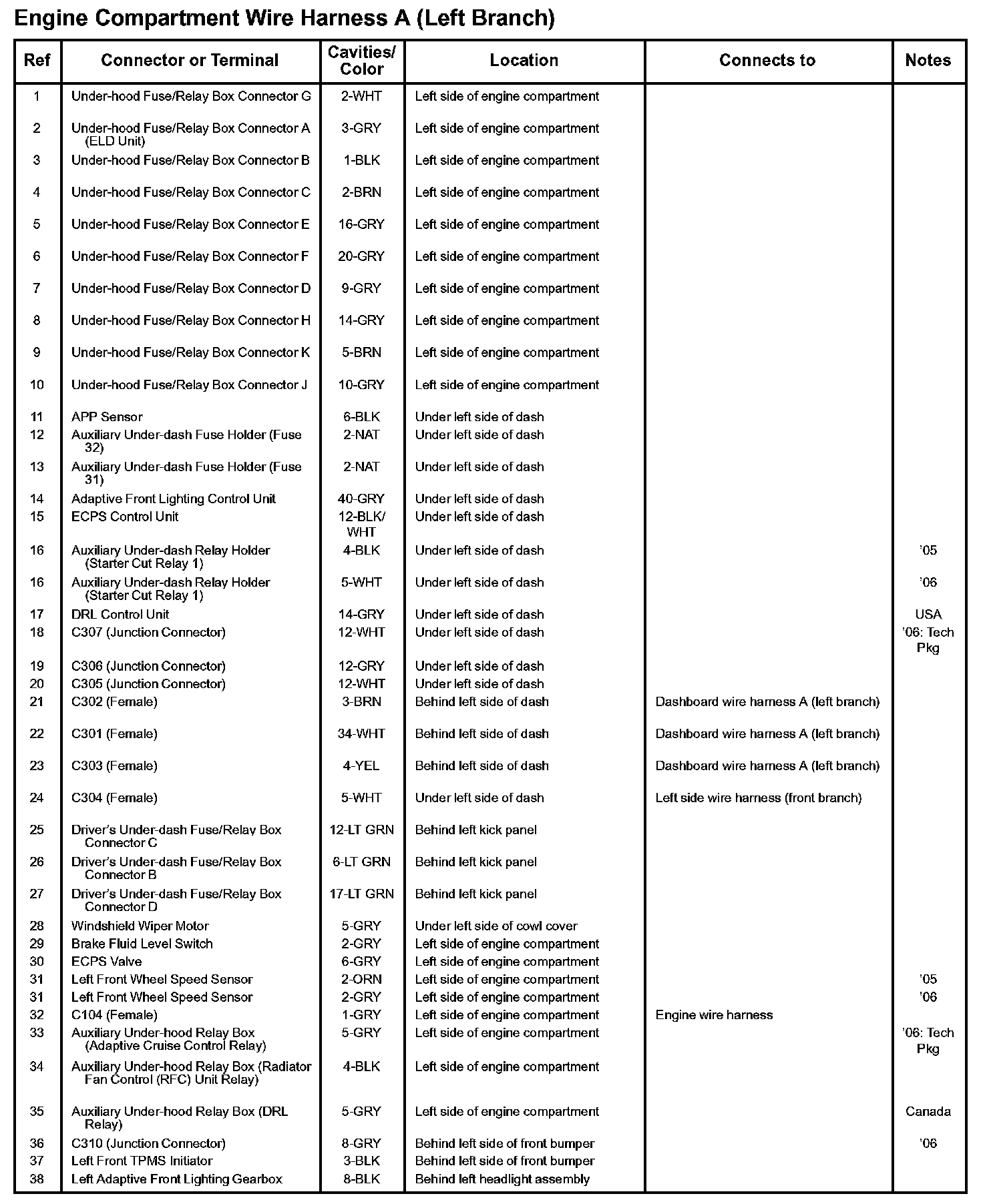 Engine Compartment Wire Harness A (Left Branch):