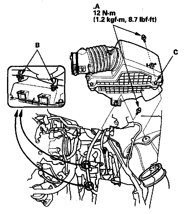 Remove the air cleaner (C).