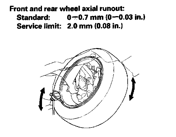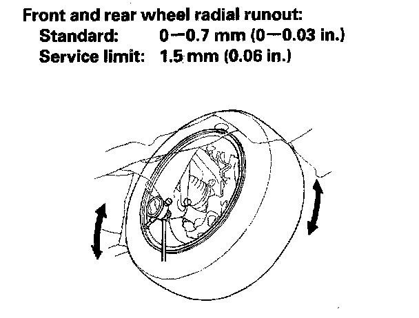 NOTE: When measuring the front wheel runout, turn the other side of the wheel slowly by hand.