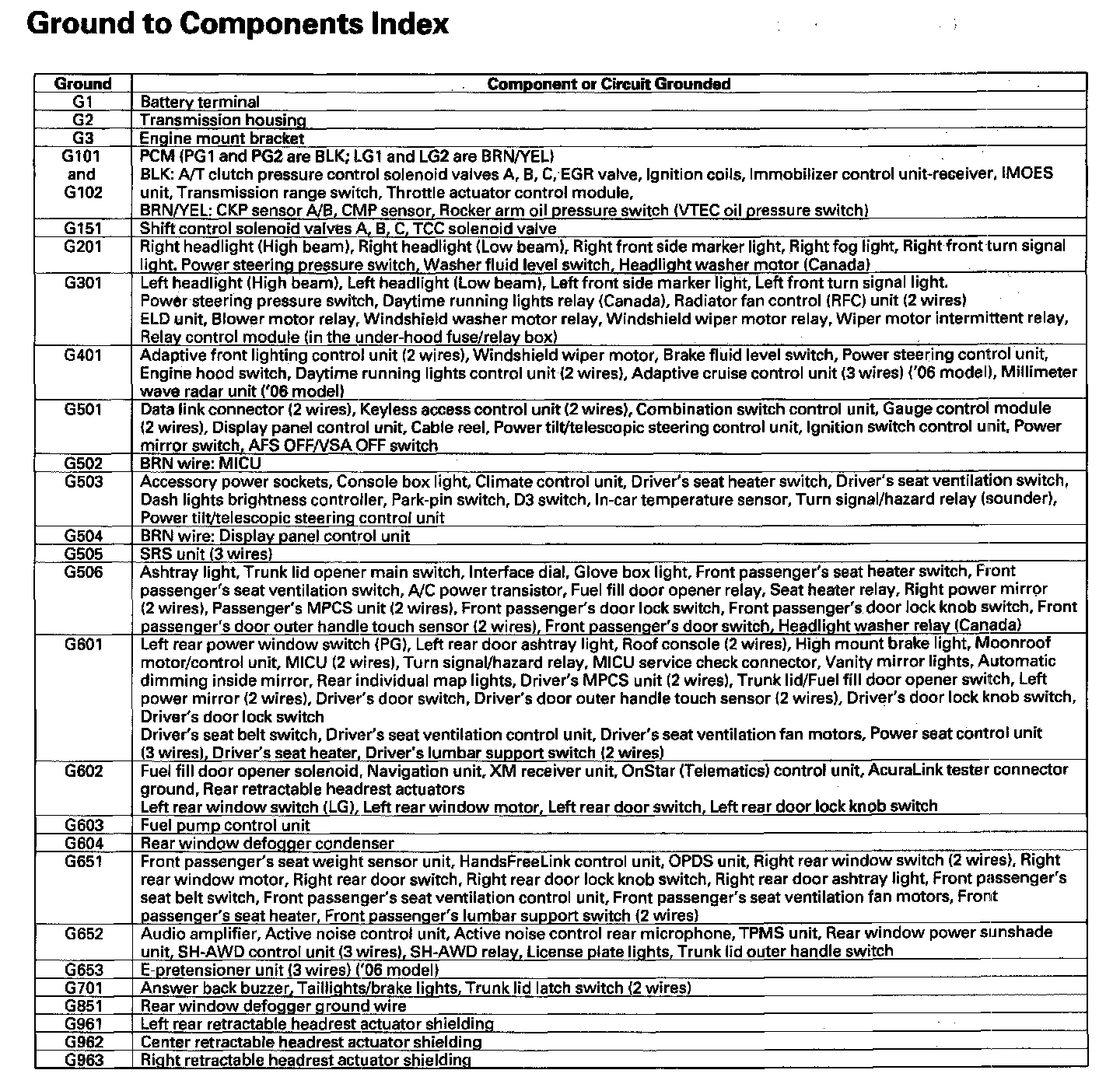 Ground To Components Index: