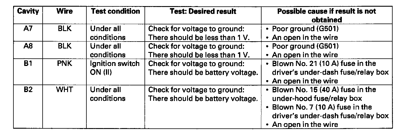 6. Disconnect the connectors to the gauge control module connector A (20P) and B (28P), and make these input tests at the connectors.