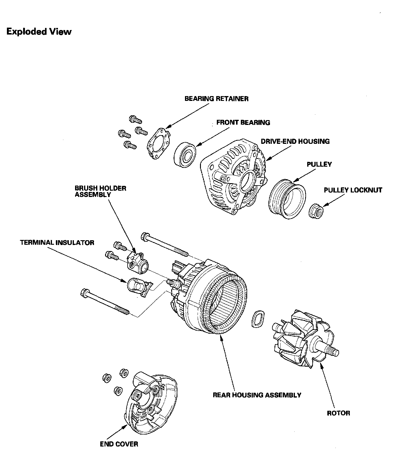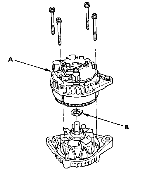 16. Assemble the alternator in the reverse order of disassembly, and note these items: