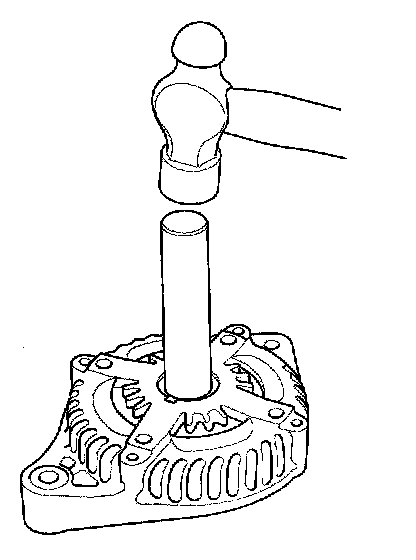 12. With a hammer and special tools, install a new front bearing in the drive-end housing.