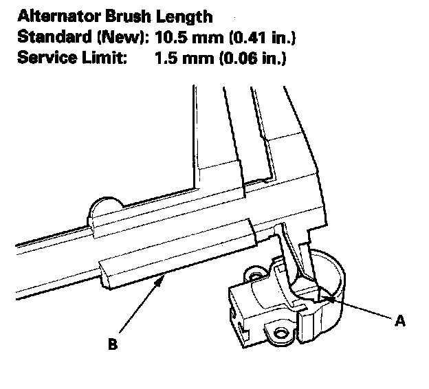 - If either brush is shorter than the service limit, replace the brush holder assembly.