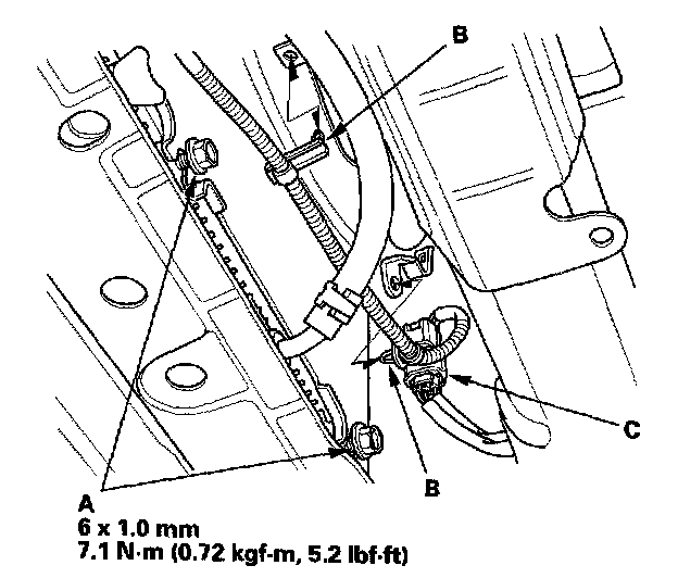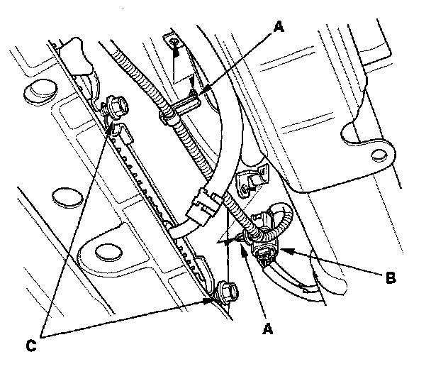 3. Install the bolt (C) securing the harness holder.