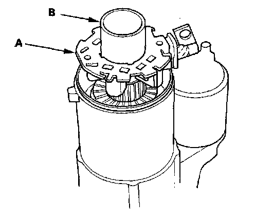 15. Check for continuity between the (+) brush (A) and (-) brush (B). If there is continuity, replace the brush holder assembly.