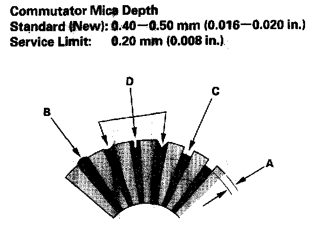 - If the commutator runout is within the service limit, check the commutator for carbon dust or brass chips between the segments.