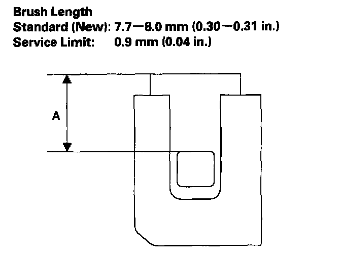 14. Measure the brush length (A). If it is shorter than the service limit, replace the brush holder assembly.
