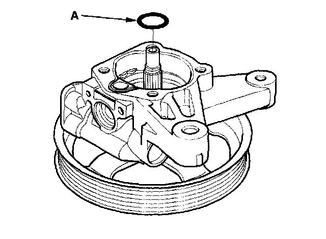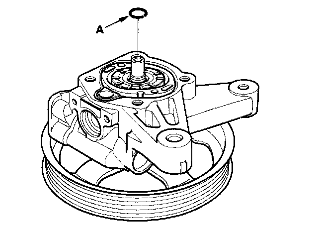 15. Coat the new 16.8 mm O-ring (A) with power steering fluid, and position it in the bottom of the pump housing.