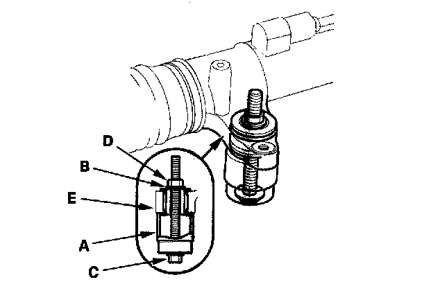 3. Hold the flange bolt with a wrench, and tighten the nut with another wrench. Remove the gearbox mount cushion (E).