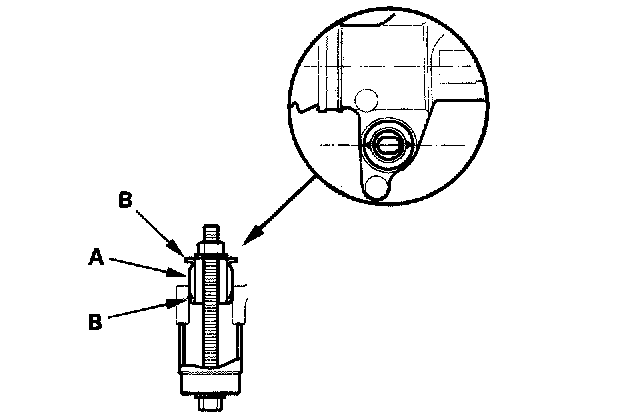 6. Install the gearbox mount cushion by tightening the nut until the mount cushion edges (B) properly fit on the gearbox flange surface.