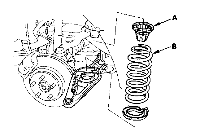 1. Install the spring mounting cushion (A) and spring (B).