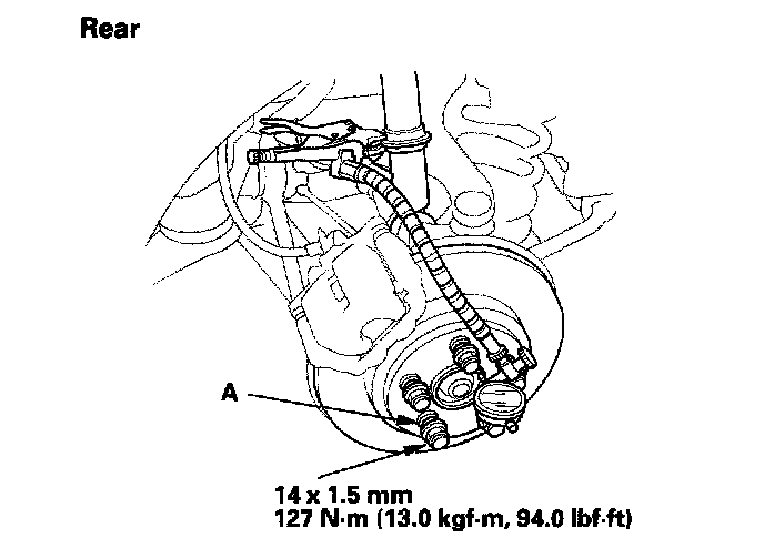 3. Install suitable flat washers (A) and wheel nuts, and tighten the nuts to the specified torque to hold the brake disc securely against the hub.