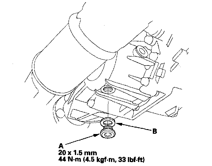 5. Remove the filler plug (A) and sealing washer (B).
