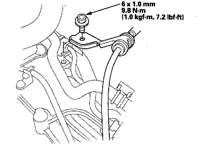 17. Insert the new shift cable through the grommet hole, and install the grommet in its hole. Do not bend the shift cable excessively.