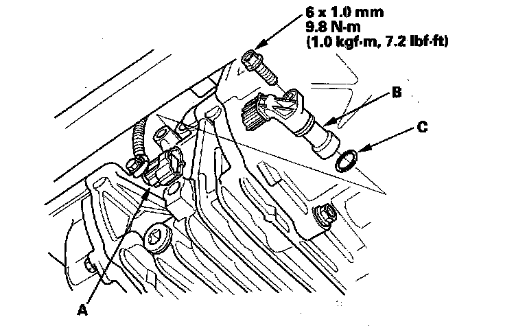 3. Install the hypoid gear speed sensor with a new O-ring (C) in the reverse order of removal.