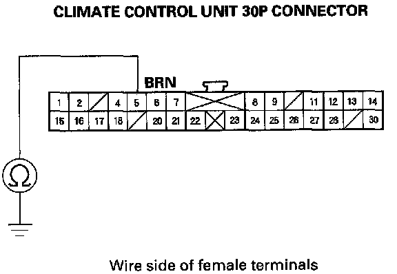 4. Check for continuity between the No.5 terminal of the climate control unit 30P connector and body ground.