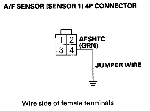 13. Connect A/F sensor (Sensor 1) 4P connector terminal No. 4 to body ground with a jumper wire.