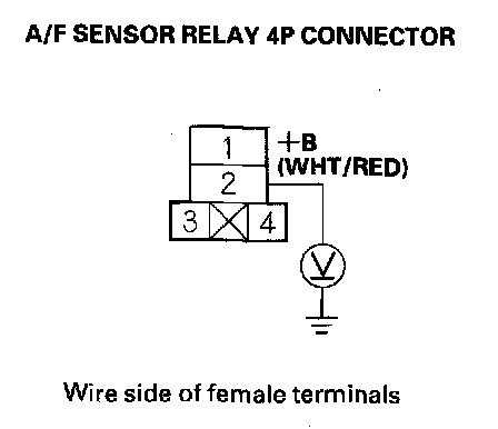 21. Measure voltage between A/F sensor relay 4P connector terminal No. 2 and body ground.
