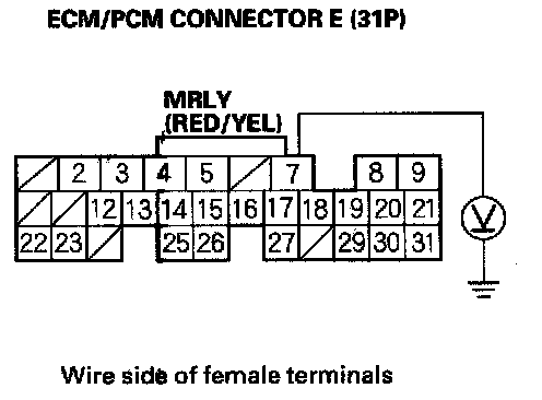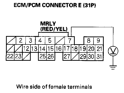10. Measure voltage between ECM/PCM connector terminal E7 and body ground.