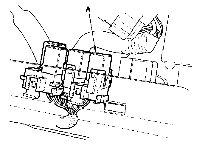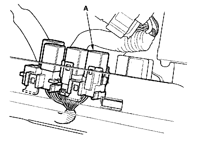 11. Remove the glove box, then remove PGM-FI main relay 1 (FI MAIN) (A).
