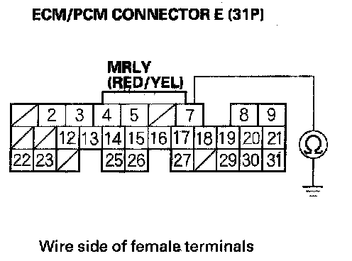 12. Check for continuity between ECM/PCM connector terminal E7 and body ground.