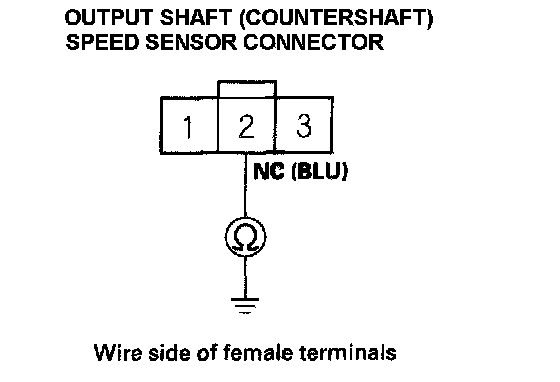 11. Check for continuity between output shaft (countershaft) speed sensor connector terminal No. 2 and body ground.