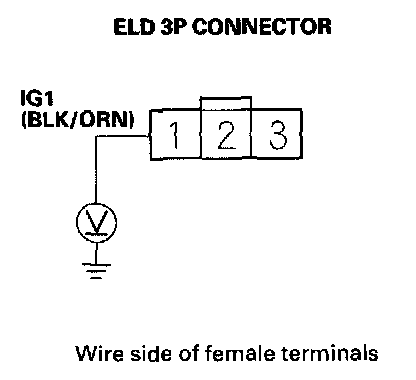 6. Measure voltage between ELD 3P connector terminal No. 1 and body ground.