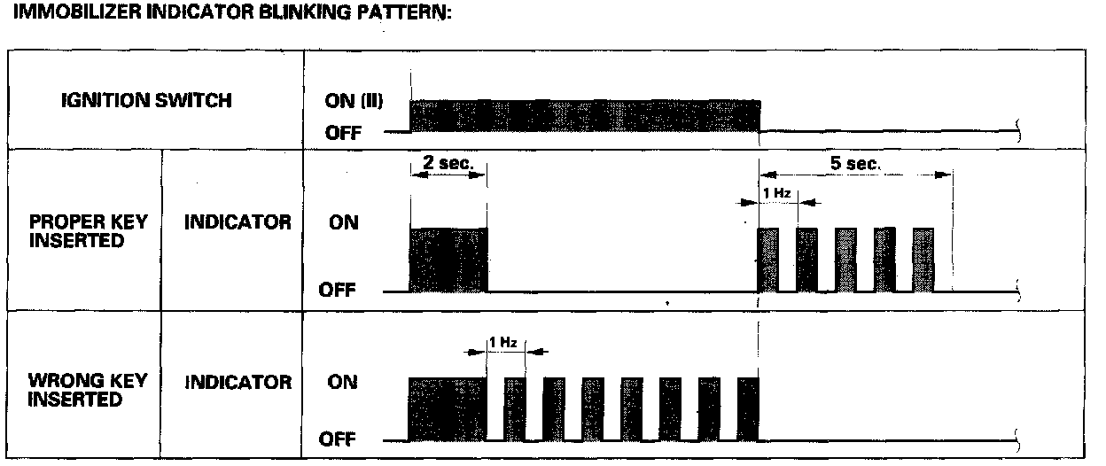 - If the proper key has been used, the immobilizer indicator will come on for about 2 seconds, then go off.