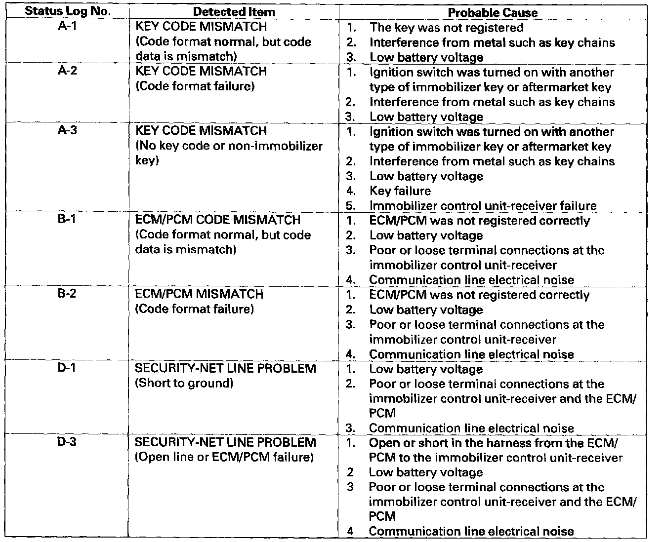 Status LogIf you suspect there is a immobilizer system problem, check the status log.
