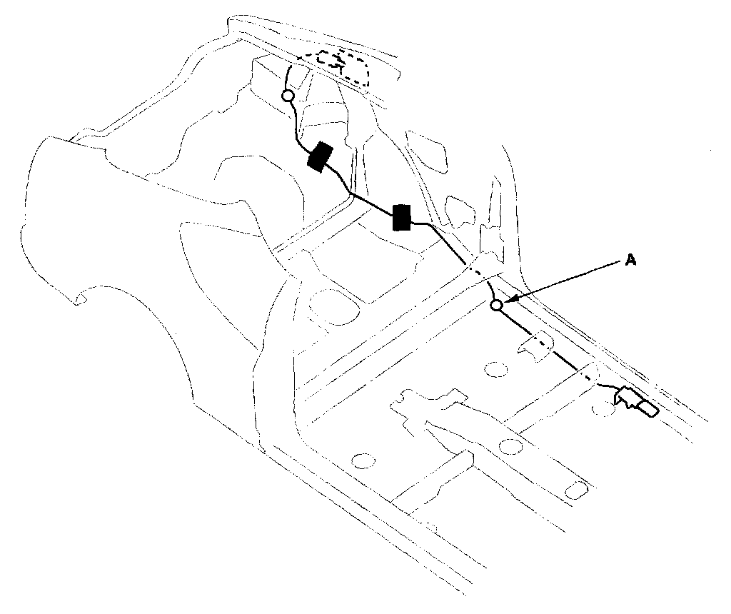 3. Disconnect the fuel fill door opener cable (A) from the opener (B)
