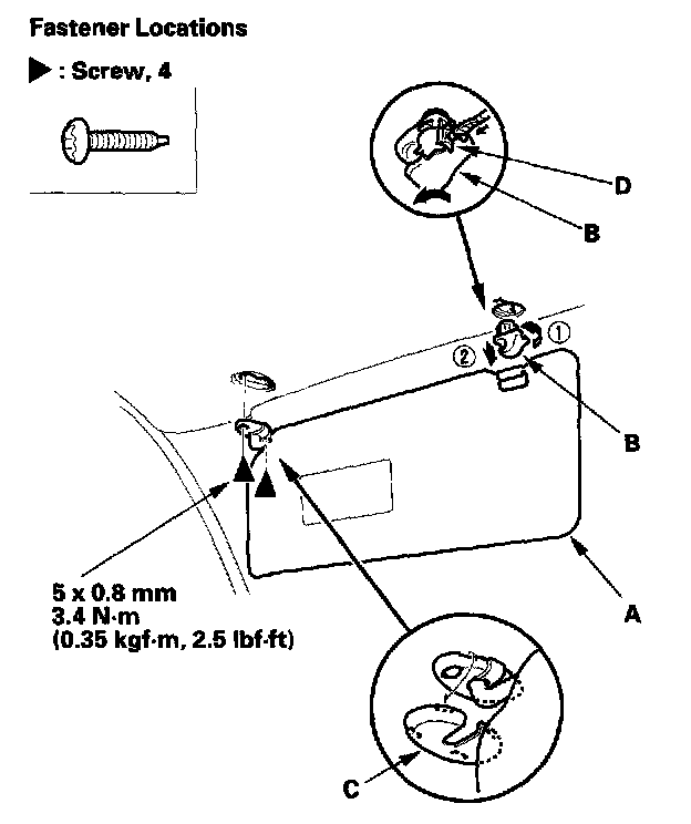 2. Remove the sunvisor (A) and holder (B) from both sides.