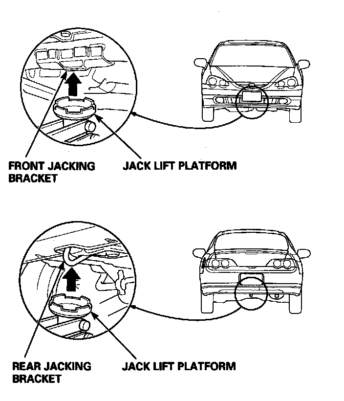 1. Position the hoist lift blocks, or safety stands, under the vehicle's front support points and rear support points.