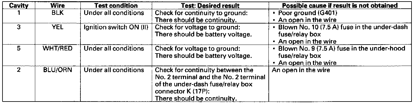 4. With the connector still disconnected, make these input tests at the connector.