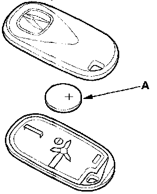 2. Replace the transmitter battery (A) with a new one, and try to lock and unlock the doors with the transmitter.