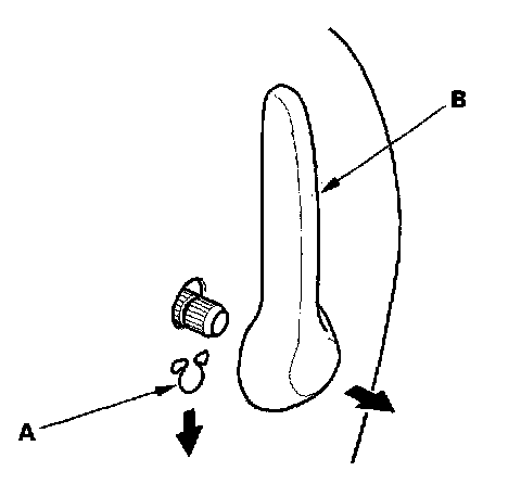 4. If equipped with a lumbar support, remove the clip (A), then remove the lumbar support handle (B).