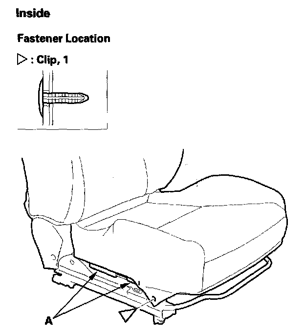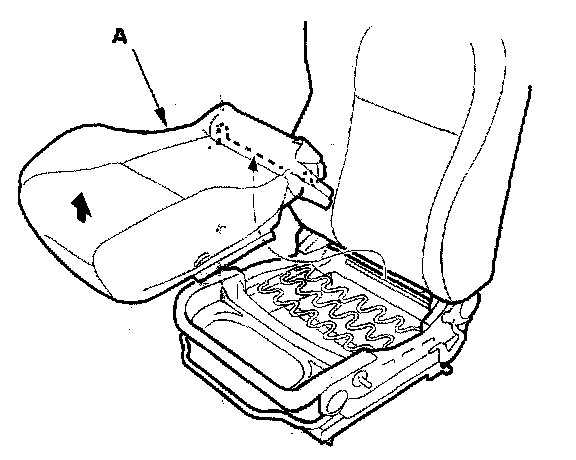 7. Remove the seat cushion cover (A) with the seat cushion pad from the seat cushion frame.