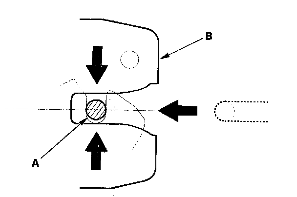 3. Install the striker in the reverse order of removal, and move the striker (A) up or down until it is centered in the seat-back latch (B).