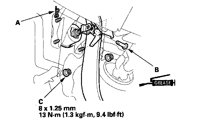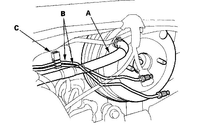 3. Remove the master cylinder brake lines (B) from the brake line holder (C).