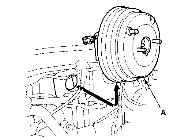 6. Remove the brake booster (A) from the engine compartment.
