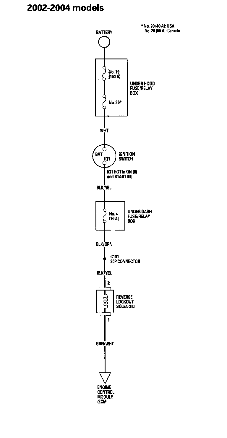 Reverse Lockout System Circuit Diagram 2002-2004 models: