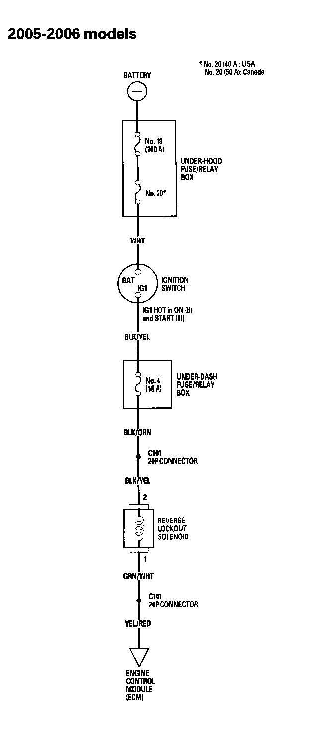 Reverse Lockout System Circuit Diagram 2005-2006 models: